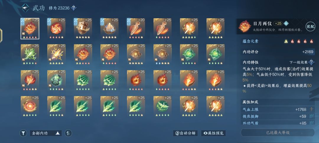 木土内功推荐:定峰/沉渊、土日月、俯仰太虚、裂坤舆、木绝电,这套内功伤害会比火土伤害差一点,但是优势在于木周天会刷新技能、减少技能CD,在被集火情况下对存活下来有一定的帮助。