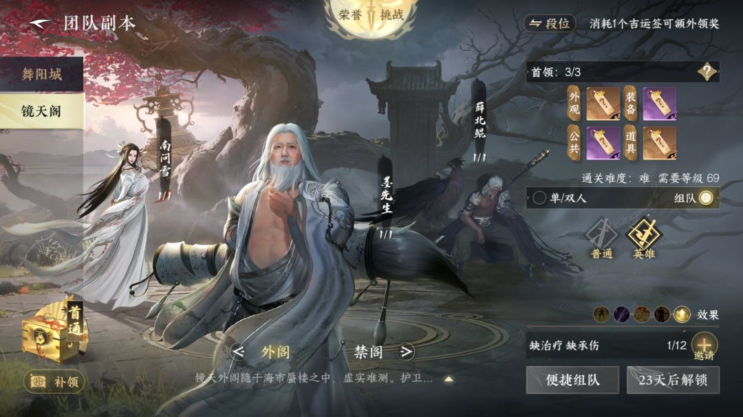 大家好,随着镜天阁禁阁的开放,相信大部分小伙伴都已经通关了,不管是组队还是单人,只要通关打完签字就好别落下小进度,英雄难度还有三周才开始,有足够的时间哦~