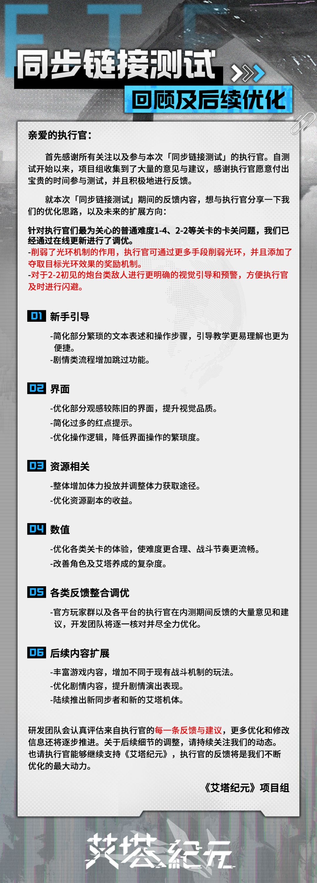 「同步链接测试」已经结束了,在这次测试中我们收获了许许多多的意见与建议,执行官们有任何想法都可以随时与我们沟通哦~ 现在,就让我们回顾一下吧~