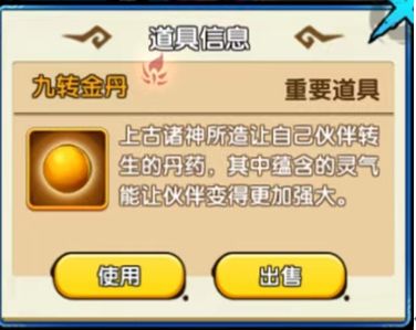 九级转丹,上古诸神所造让自己伙伴转生的丹药,其中蕴含的灵气能让伙伴变得更加强大。