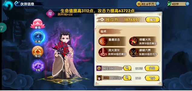 消耗80个九转金丹,生命值提高3112点,攻击力提高63722点。