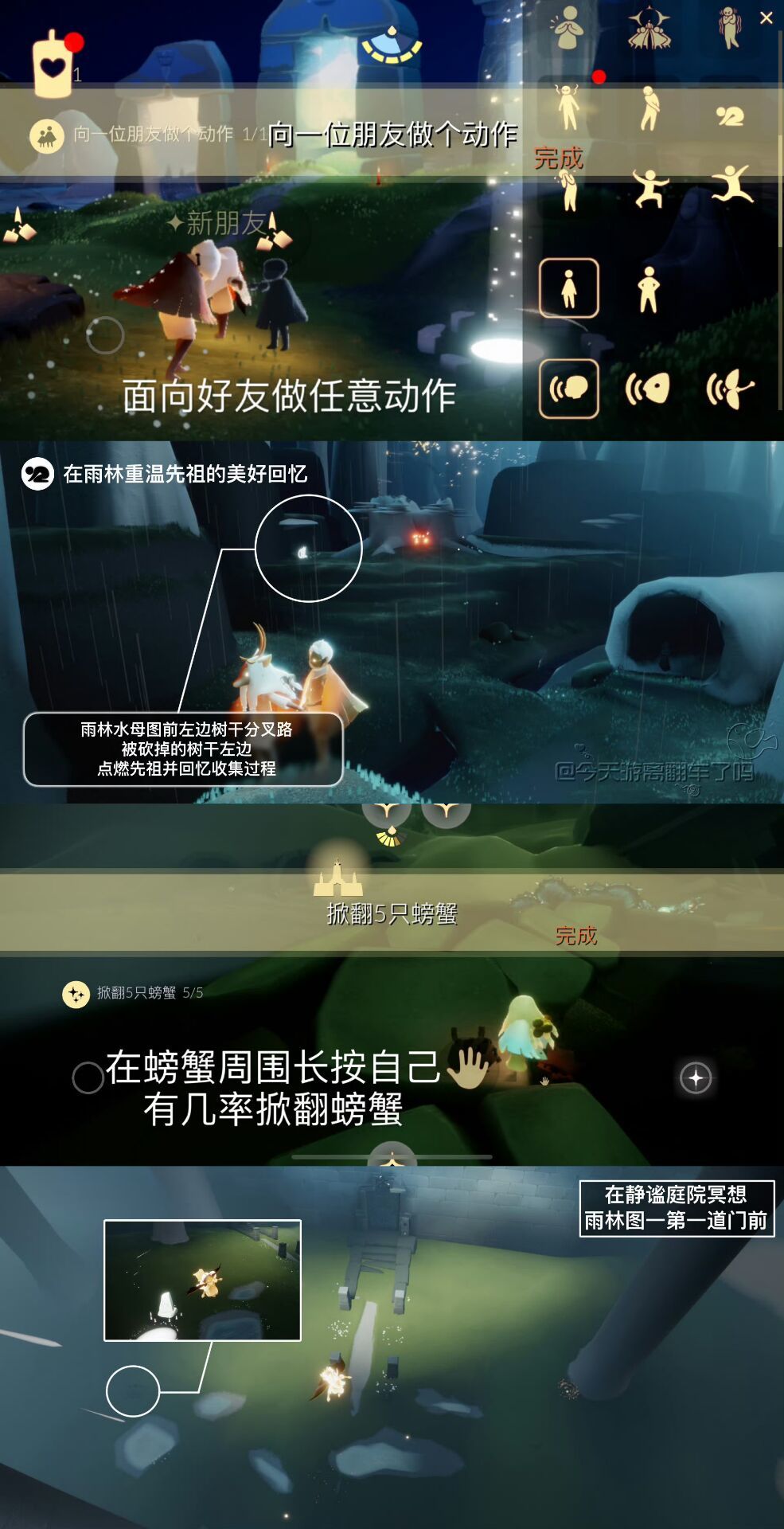 《光遇》游戏中每天的每日任务及大蜡烛的位置都不相同,玩家完成每日任务及收集大蜡烛都可以得到丰厚的兑换奖励,奖励可以用于兑换各种动作及道具,不过很多小伙伴不知道每日任务怎么做,又懒得自己去找大蜡烛的位置,我们汇总了每日任务的完成攻略以及蜡烛位置,一起来看看吧!