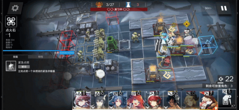 紧急取暖器的技力会不断减少,可以通过部署干员在右侧的风门上防止已激活的紧急供暖器熄灭,但未激活的紧急供暖器无法防止技力条的快速下降。干员的攻速也是很重要的一点,之前太过在意攻击范围忽略了……