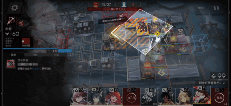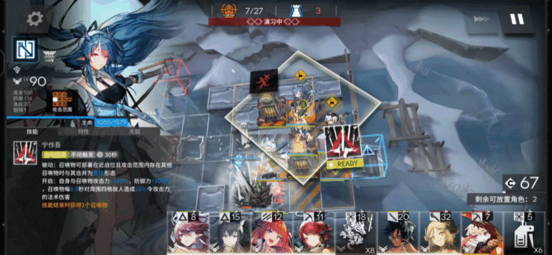 令的三技能会在召唤物弦惊周围四格每0.5秒造成一次伤害,让令可以在安全的范围内激活远处的紧急供暖器。令持有多个召唤物哪怕在众多敌人的攻击范围内也不用担心~召唤物最多可以同时部署四个可以激活多个处于危险范围不好让干员处理的紧急供暖器。