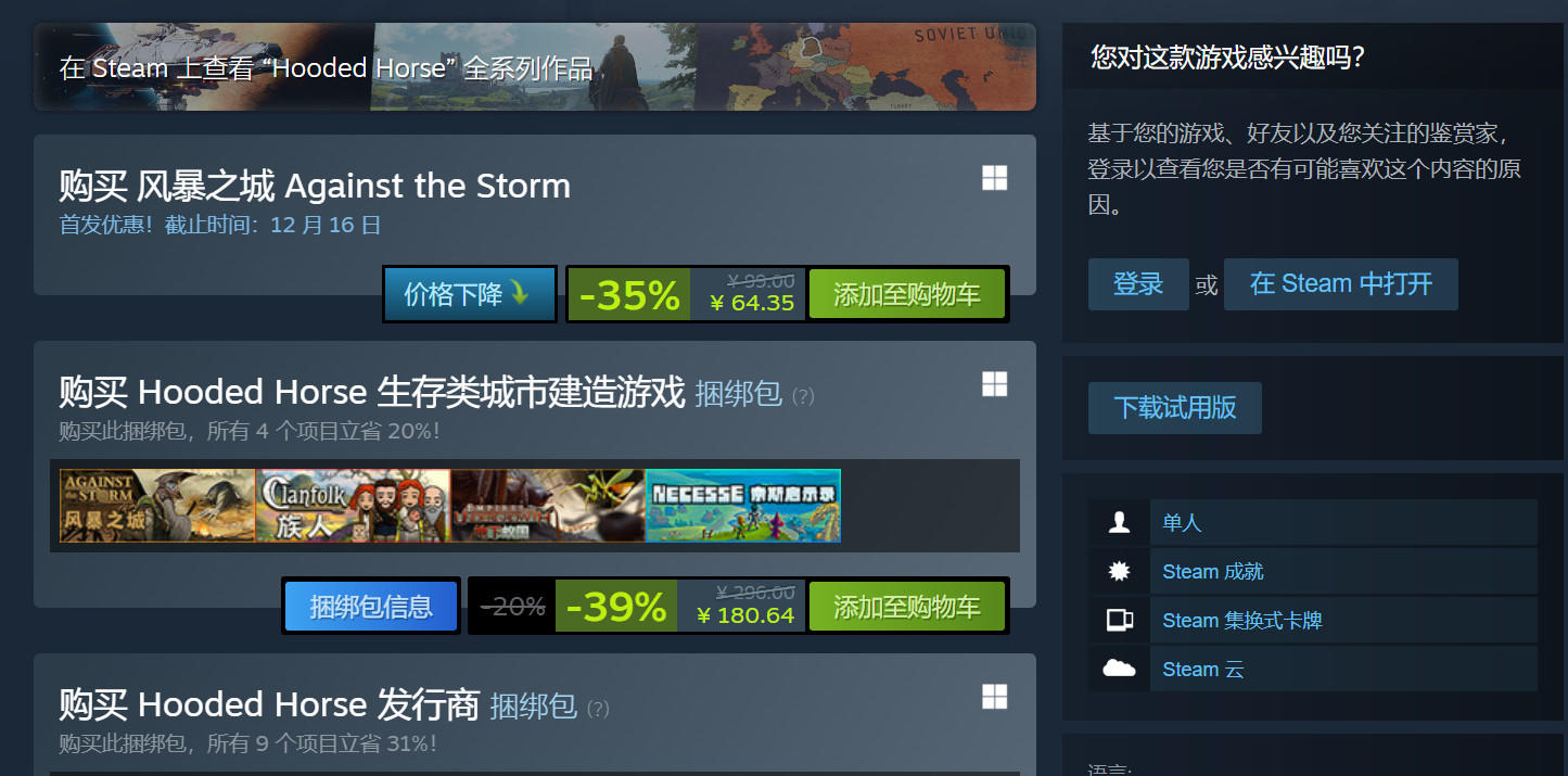 好评肉鸽城市建造游戏《风暴之城(Against the Storm)》现已退出抢先体验,正式发售,登陆了PC