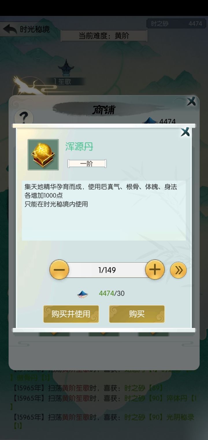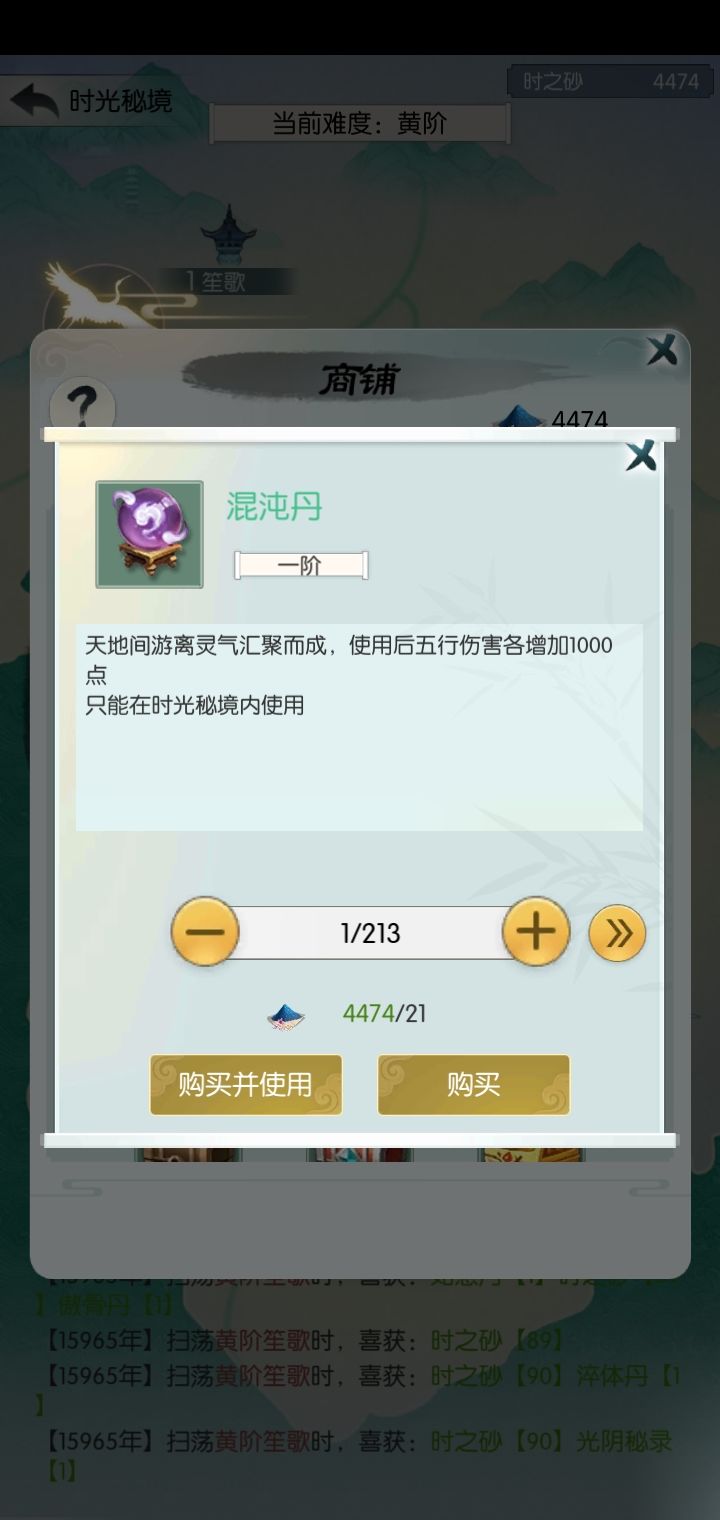 然后最后几天建议把时之砂分配一下分别买混沌丹和混元丹。