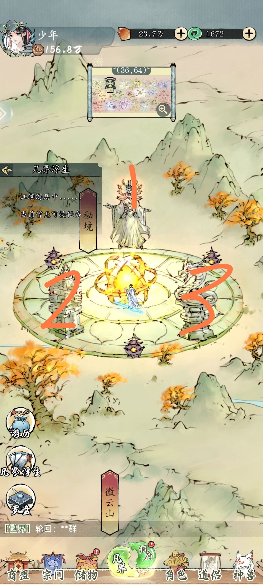 三-七图,凡界每日是随机的,都去点一下,有的需要顺序,如果不一样就自己试试,全部点亮就成功,中途熄灭说明顺序不对换个顺序就好