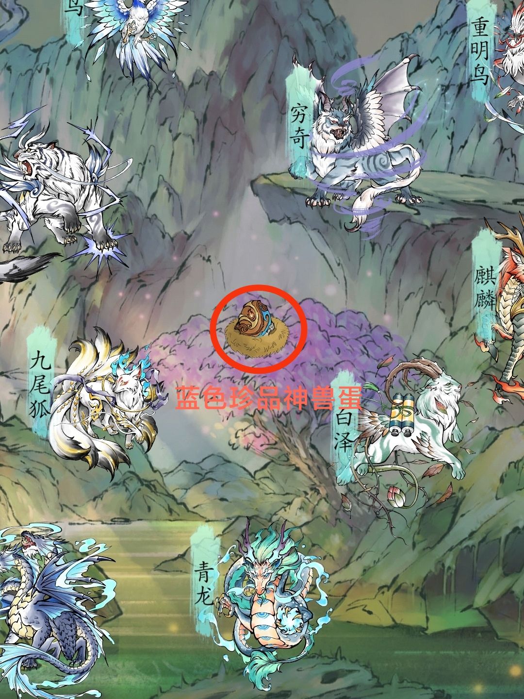 遗失荒谷上方是五行神兽蛋,左侧山谷青冥兽魂