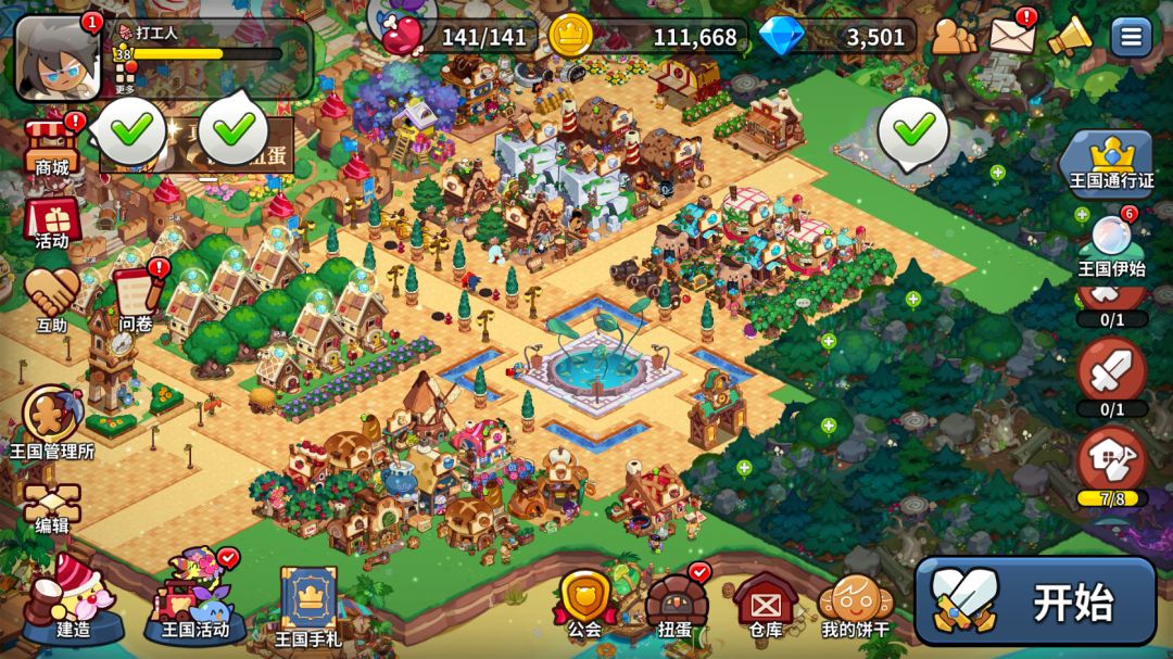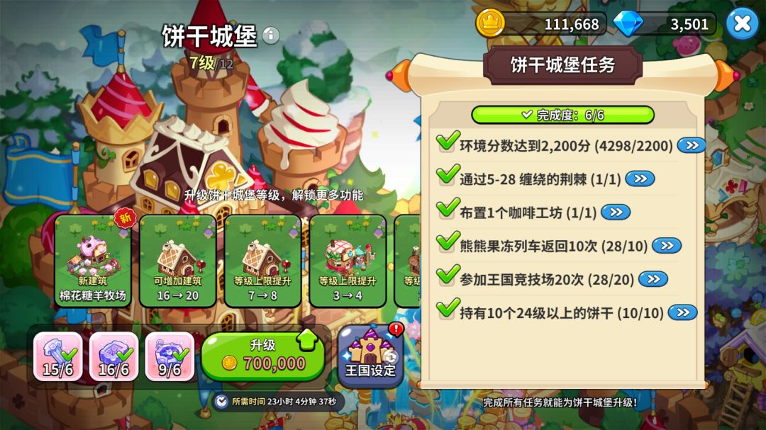 多生产道具提交许愿树,因为城堡7升8要70万金币。