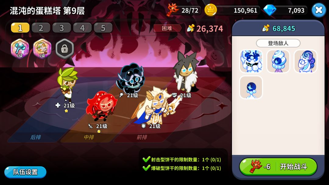 前期资源培养一个五饼干主力队是没什么问题,输出最好能不同类型就不同,这样升级技能的粉末不会冲突,饼干的技能等级都能升上来。