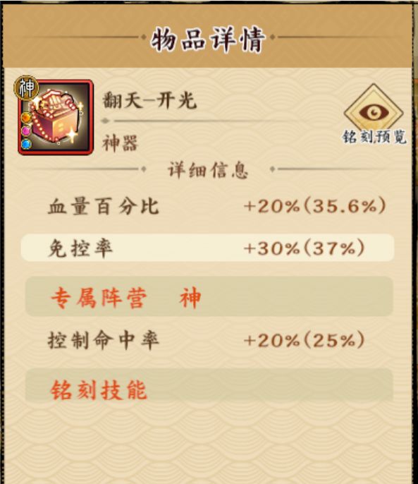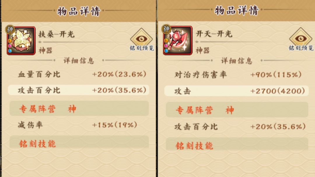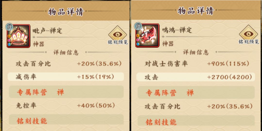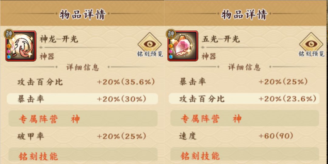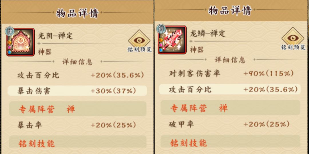 神器选专属光阴禅定,法宝选2或3。神器选龙麟禅定,法宝选1(注:宝石必须带暴击率的)。