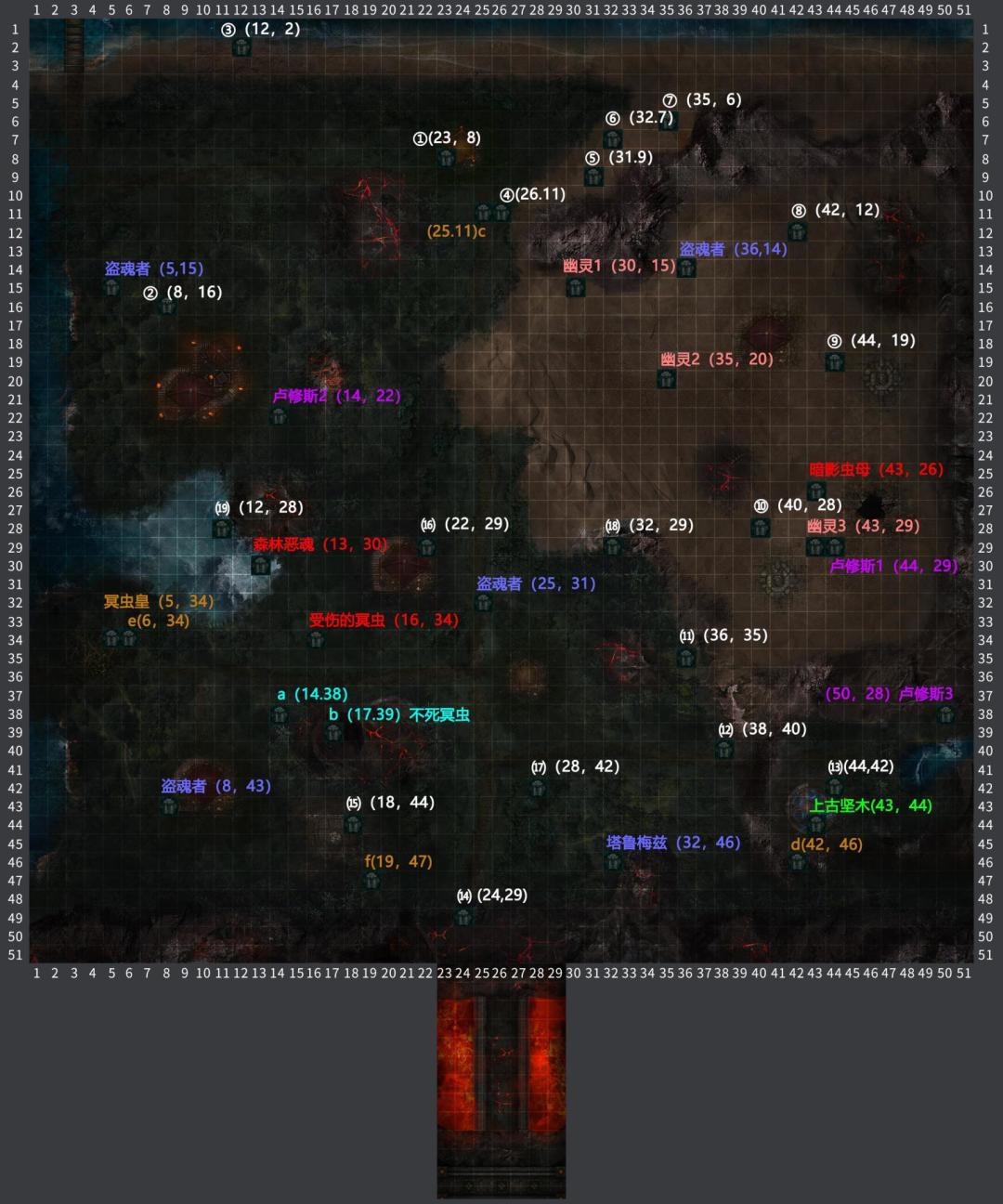 从据点a(14,38)进去打败据点b(17,39)的不死冥虫即可 boss2.30狂暴