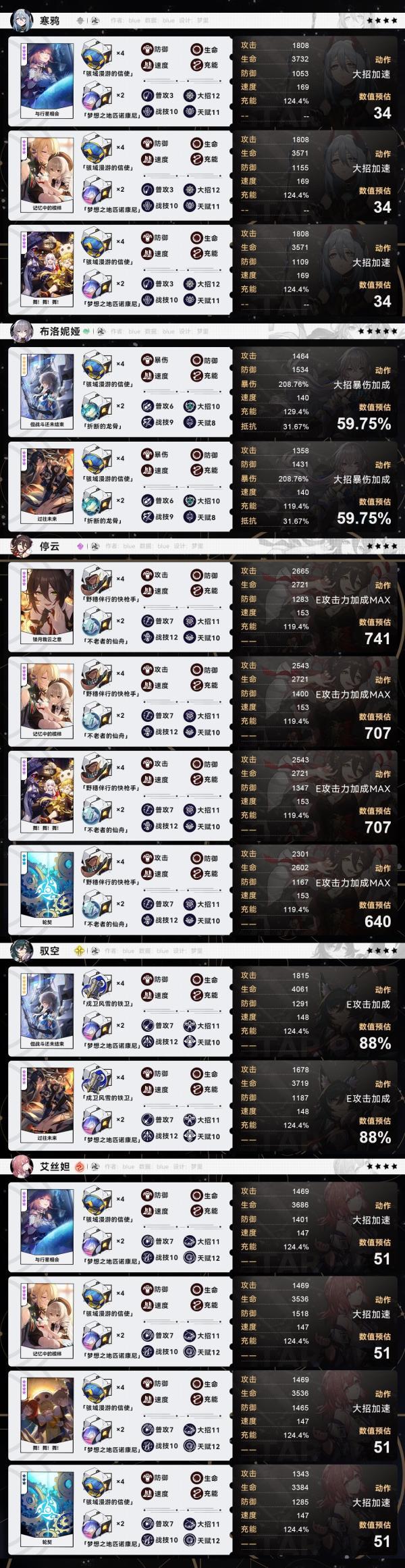 套装直接信使4,内圈辅助银枝时带梦想2,作为泛用辅助时带仙舟龙骨都可以。