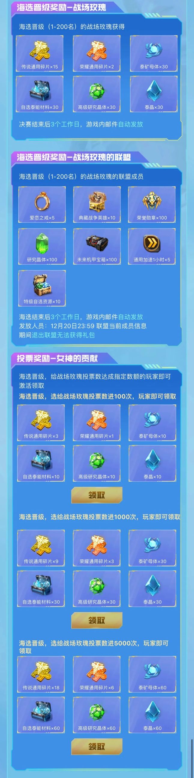 毫无疑问,最顶!最爆炸的奖励就是这一块了!选手本人及其对应的投票者、联盟、以及所有投票的人,符合条件都能领取超级丰厚的道具大礼包!!超级无敌多,领奖领到手软的那种!!