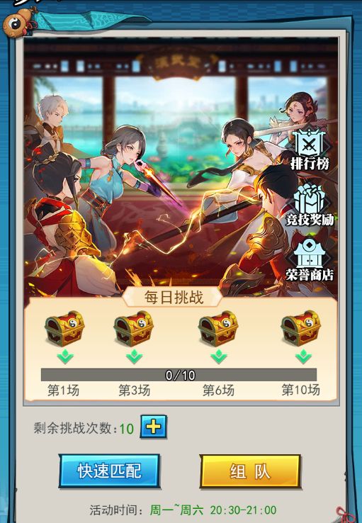 2、每日可挑战10场,系统会根据双方的战力匹配对手!越战斗到后面,玩家实力越强!