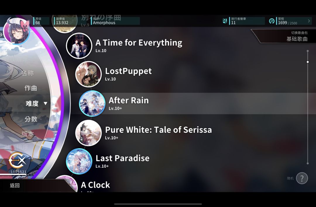 点击左上角按钮可以进入曲包选择列表