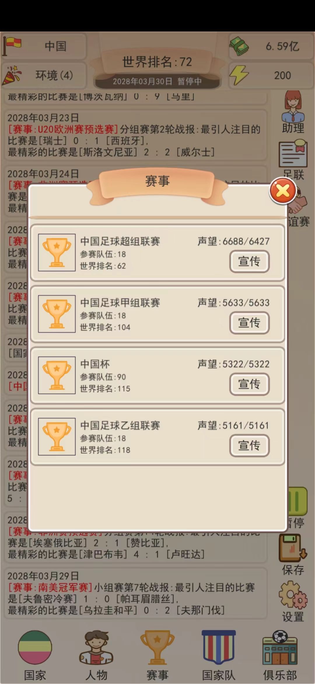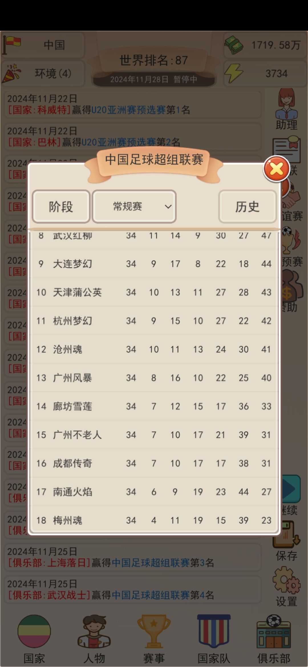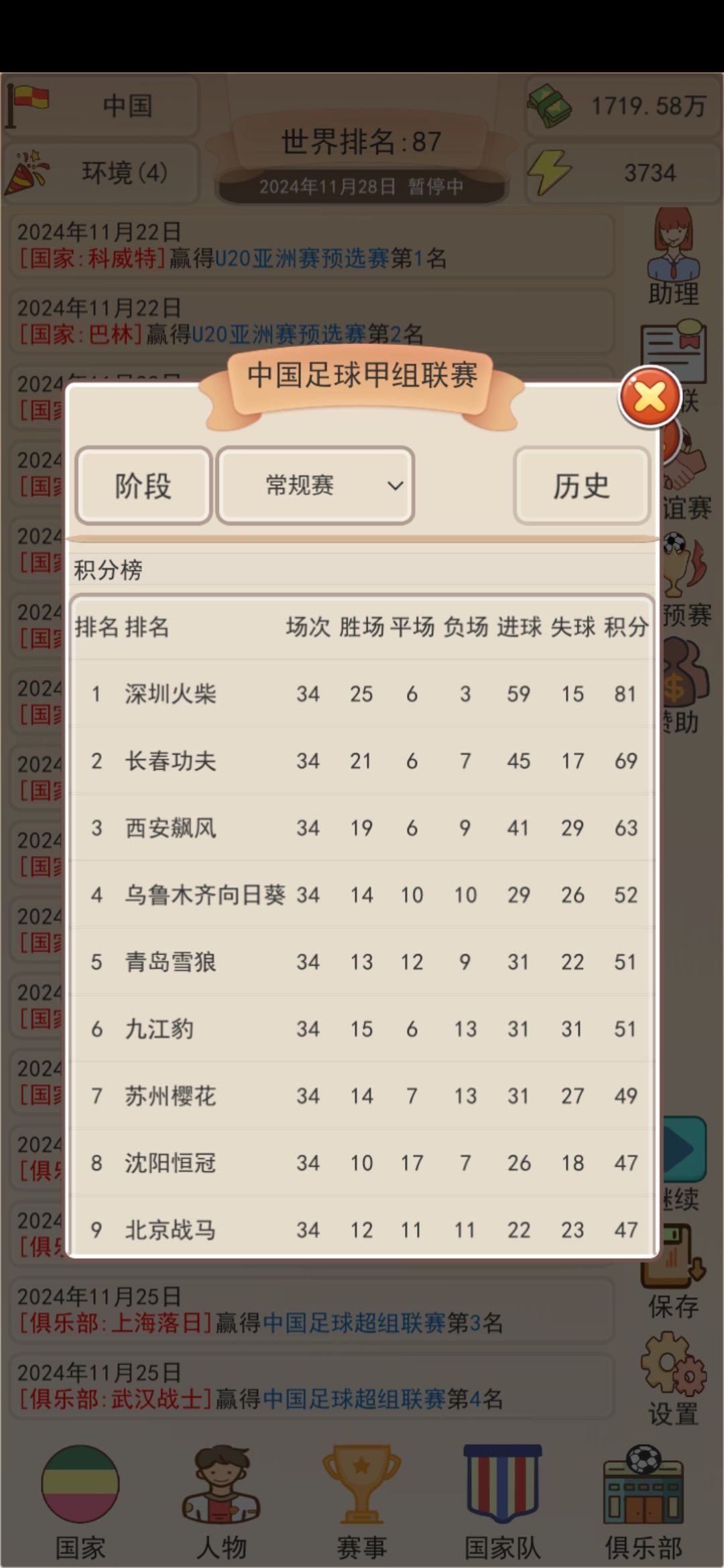 关于“全拿走才是最速发展,你自己试试就知道了。俱乐部一点都不重要。国家队参加世界比赛的结果只看球员能力。把分成全部给足协,不管俱乐部,前30年国内四项赛事声望也是正增长。而30年球员能力已经能点到90了。点到87就已经大概率世界杯冠军了。前二十年是正增长,然后放缓倒退。但这无所谓,四十年后球员能力100我直接建新俱乐部,俱乐部初始能就是50,而且是会员制会自动发展,直接淘汰旧俱乐部就行了。赞助式倒退到50以下本来就是目的,我希望他能力越低越好,这样就能被踢出联赛了。这就是新旧迭代阵痛期。”观点,我亲自实践了一番结果如图