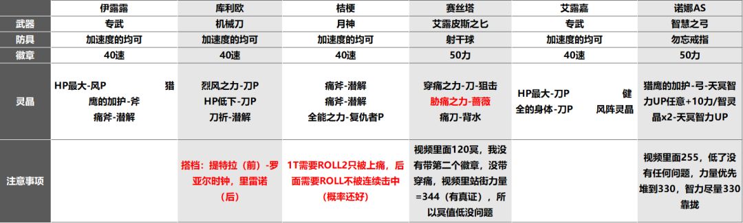 💬低保队伍推荐角色/装备均为国服同期可获取状态,队伍的天冥要求会备注在表格内,攻略能保障的是和视频里做到1:1可以拿到全部奖励,冲击高分/练度不够请另寻思路,但依然可参考文末相关攻略;