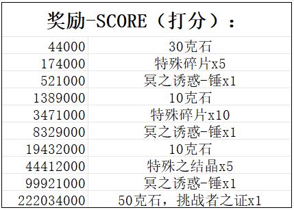 奖励:克石x50 冥之诱惑-斧x2 修复EXP+150