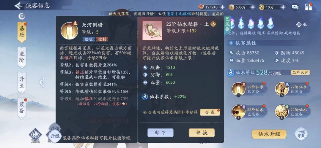 50%/70%概率镇压,需要开27仙术才能开启70%的镇压效果,所以27仙术对于土南宫而言至关重要。这里的概率为固定概率,并不受负面概率提升,基础概率提升的影响,换句话说神祝气+气并不能提升土南宫的镇压概率,就是70%拼脸镇压。