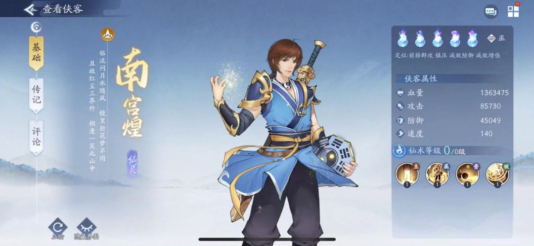 土南宫组队思路:土南宫属于万金油角色,主要看对面有木有强被动的侠客,被动越强,土南宫镇压效果就越明显。至于pve也一样都是看对面的boss被动是否强大,过于强大的被动就需要镇压。