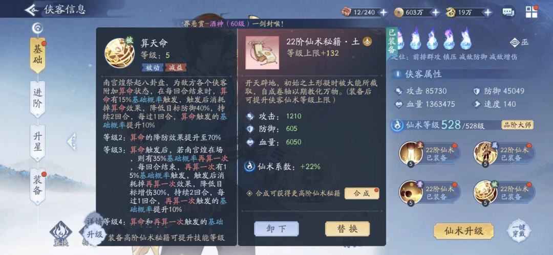 优点:算命、再算一次是以土南宫存活作为前提,并且是对每个敌方都分别进行基础概率计算(基础概率可以用气气、被动提升命中),整体而言这两个效果命中概率其实很高,尤其是再算一次在算命触发后叠加负面命中,基本也能实现同时触发。