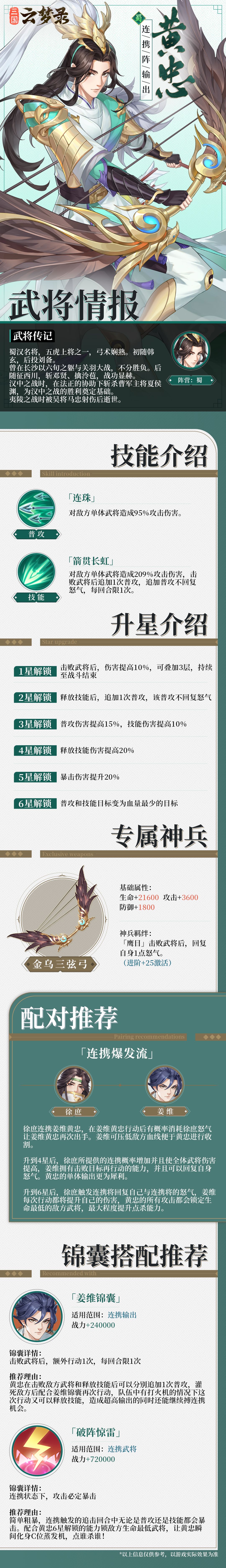 小将军好!前两日小乔打探到了黄忠的武将情报,今天立刻迫不及待分享给大家,希望能对小将军的三国之旅有所帮助哦!