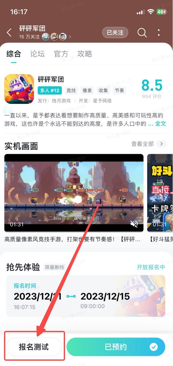 - 第一步:点击下方链接,进入测试招募页面,点击最下方【报名测试】按钮(只有iOS用户会显示报名按钮)