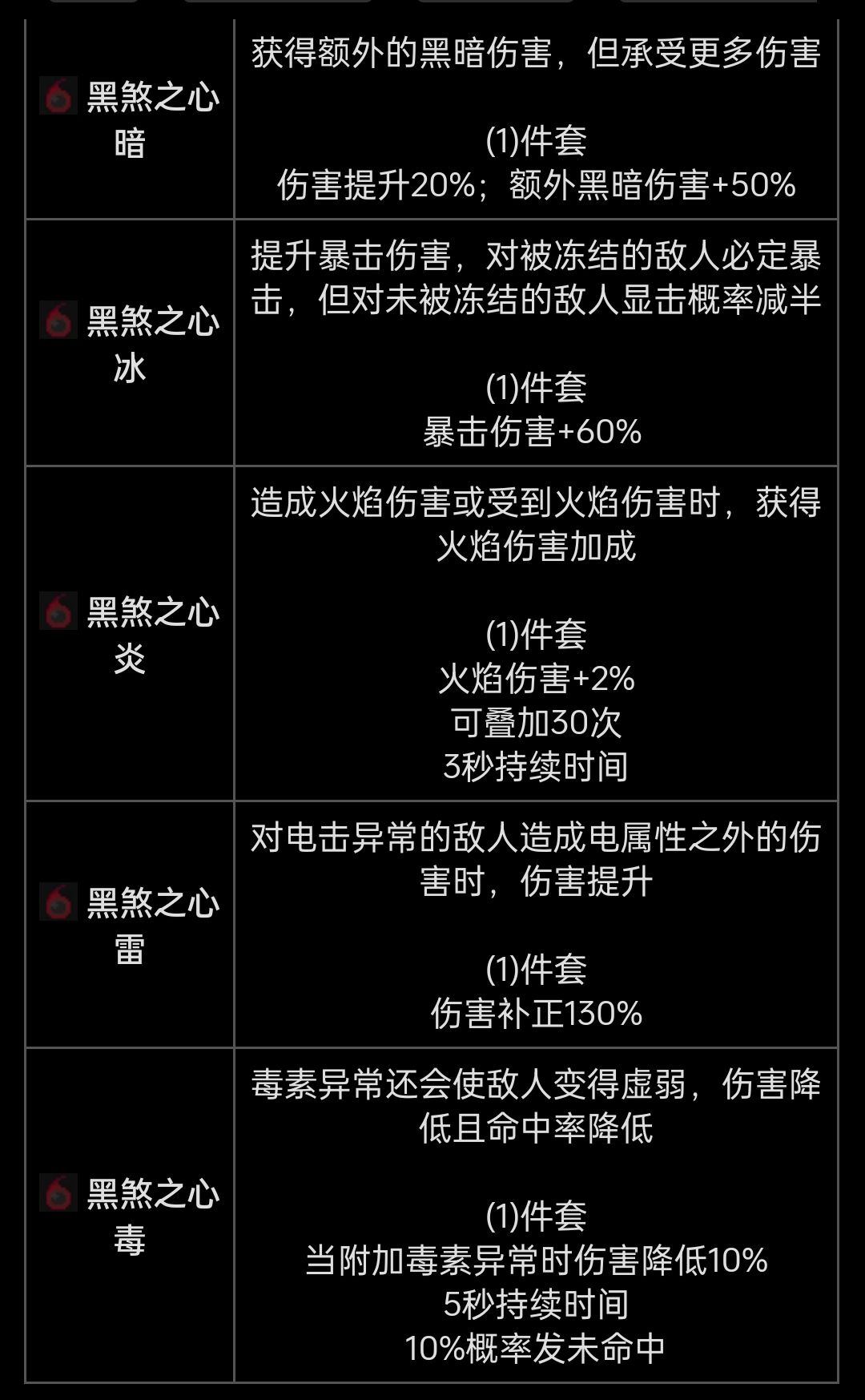 黑煞之心优先刷取雷/暗/炎羁绊,最好是雷羁绊,因为雷羁绊与元素法师的伤害方式十分契合