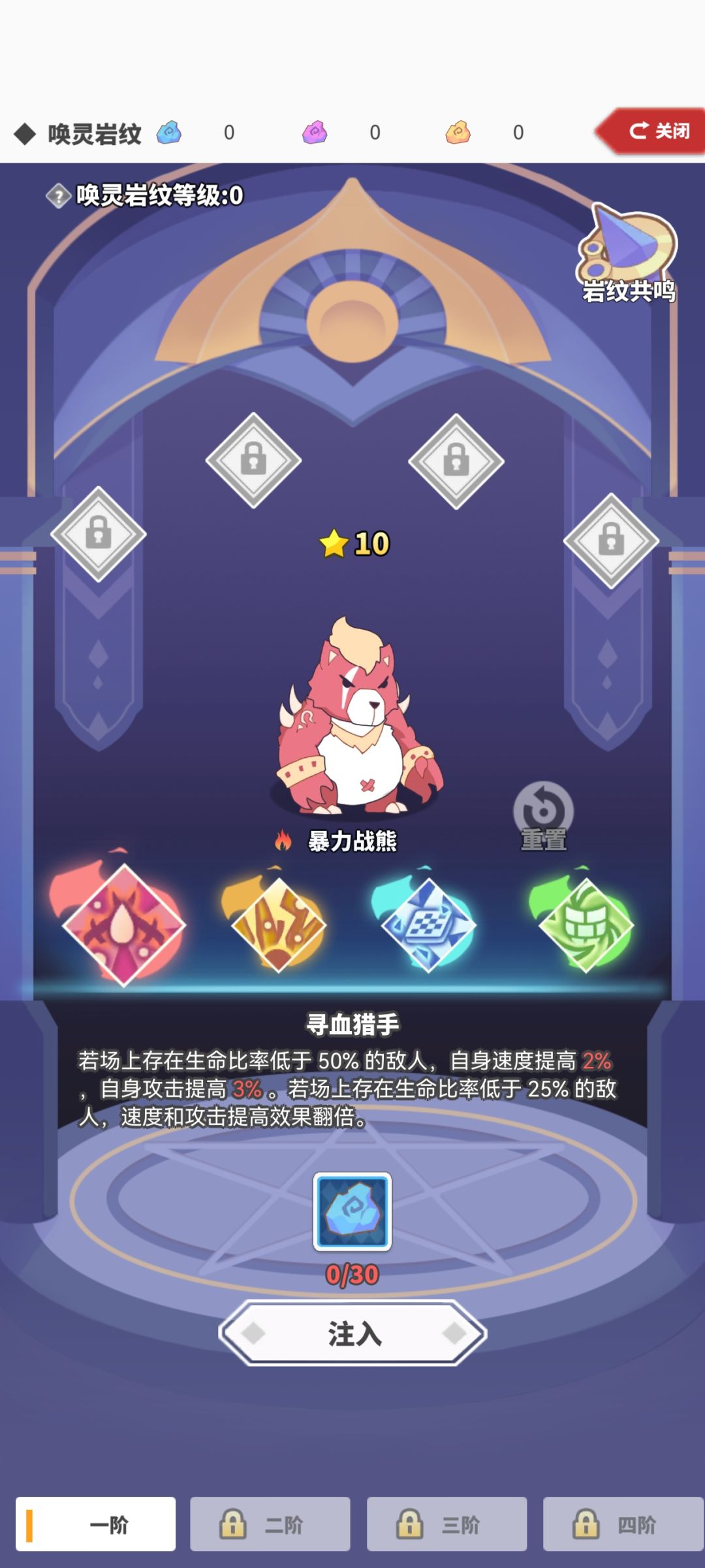 天赋共分为4阶。每一阶有四个天赋,每一只使魔只能从四个天赋之中选一个。(4阶一共能选4个天赋)