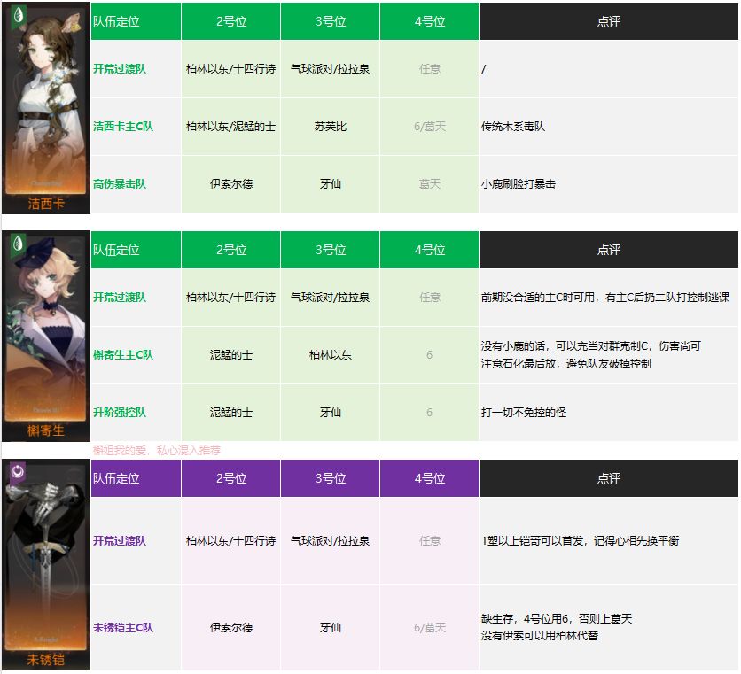 有需要可保存本地,本贴不定期更新配队推荐,建议收藏