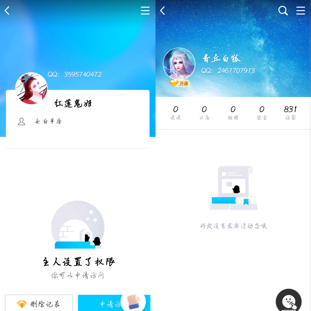 两个客服,一个可以看空间,一个不能看