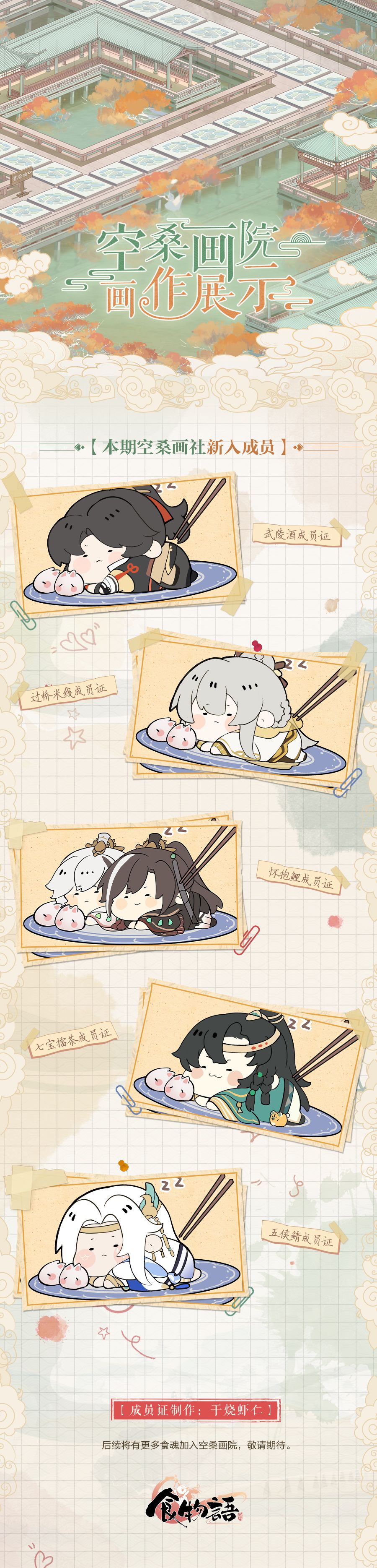 2023年12月14日更新后,【画廊写生】玩法奖励新增尚品画作「武陵酒成员证」「过桥米线成员证」「怀抱鲤成员证」「七宝擂茶成员证」「五侯鲭成员证」「扒广肚成员证」「御笔猴头成员证」「海米升百彩成员证」「芙蓉蟹斗成员证」「雪梨肘棒成员证」。