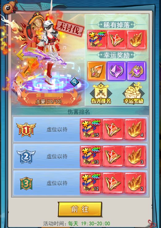 3、共有10名土豪,每次讨伐成功后,参与的玩家都可获得奖励