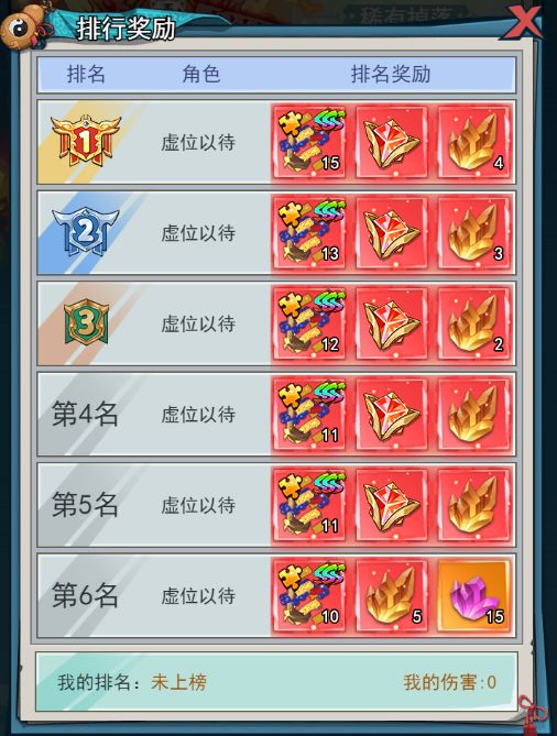 3、伤害奖励:在活动内造成的伤害将进行累计排名,活动结束时按照排名发放伤害奖励