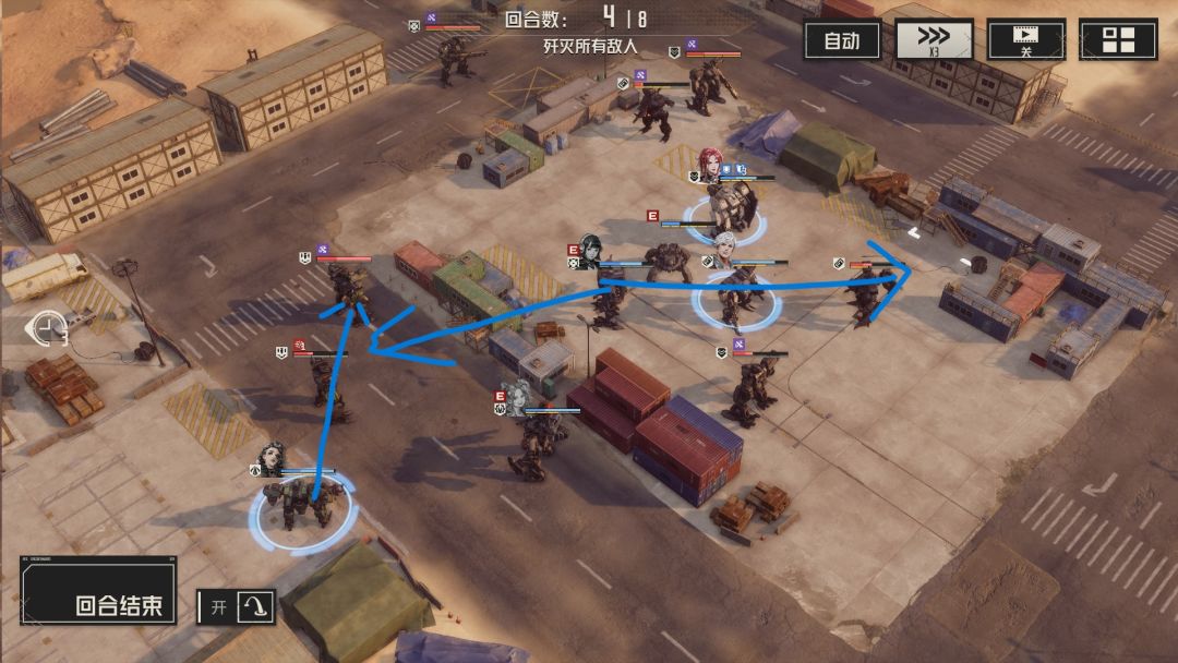 本关解法:开局应派遣主力输出向导弹兵出现位置行动,在其出现后快速将其消灭,同时每回合应尽量分散攻击,将更多敌人的buff清除。