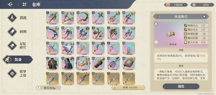 最后顺嘴想说的是什么呢,像魔方,风息,长青,单点杖这种机制类装备没有第三个出现前先别升星比较好,我升星后就后悔了