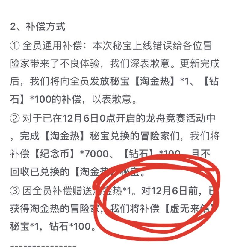 因为策划无能,无法区分航海活动最后一天和龙舟活动第一天,这两个都是12月6号,一刀切。导致所有最后一天兑换淘金热的玩家得不到补偿,想额外再拿一个虚无来信起码好几百块钱,凭什么?