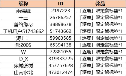 第三期活动已经落下帷幕,获奖名单如下,让我们一起恭喜中奖的主公~