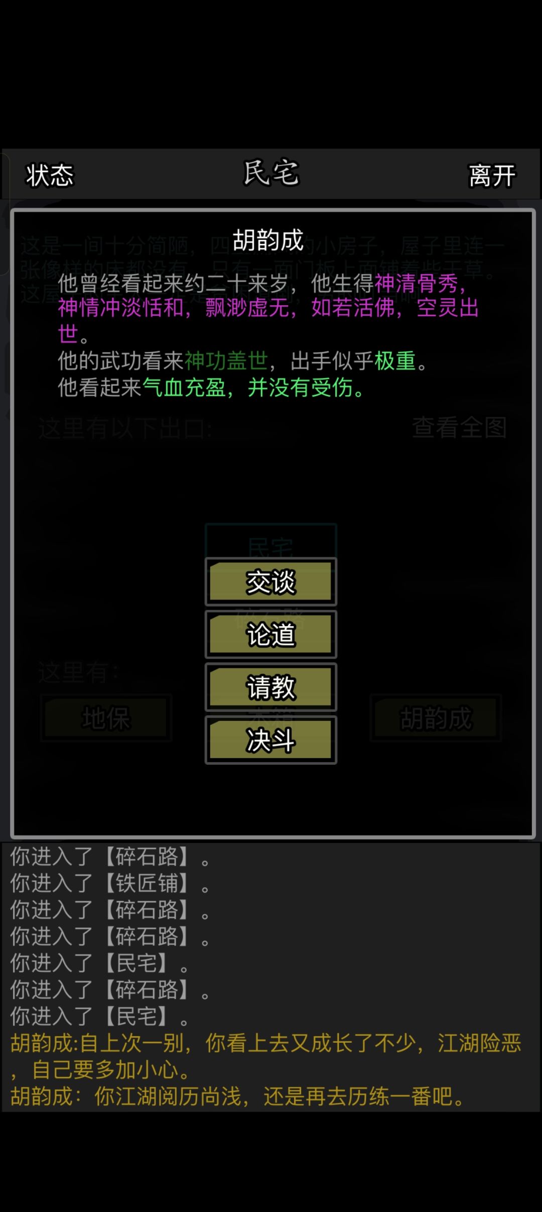 一路快刷,真的是难以想象的快一剑一个小朋友,还是会路过孟青石这里,想想蓬莱岛还是有点怀念,还是会找到自己上一代我故意选择了华山村,为了让他离我更近,真是感性,突然手痒好像再运作一下我的桃花剑啊,等我五转成为大佬再来吧。