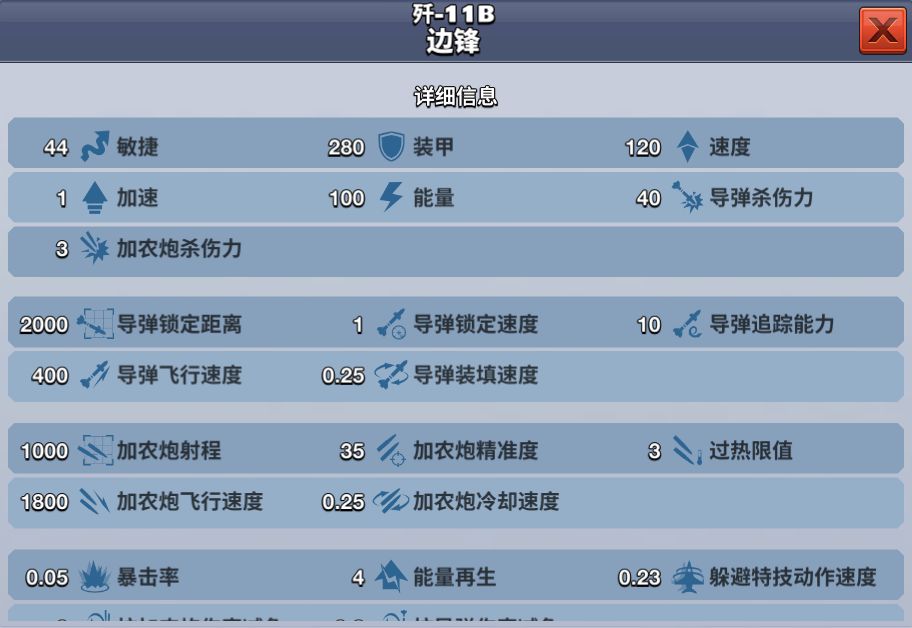 在游戏中歼-11B 边锋是一架A级均衡型战机,当玩家勋章数达到1800时解锁,花费2400钻石购买可获得该战机