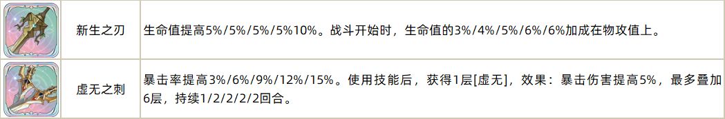 科尔的配装,武器剑里面提升暴击率、可以叠爆伤的虚无之刺,非常适合科尔;另外,补充生命、依据生命额外提供物攻加成的新生之刃,科尔也可选择。