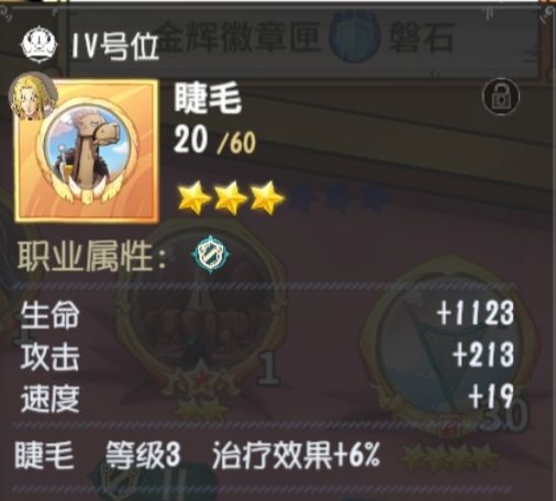 因为我的推荐队伍是斩击队3c,竞技场徽章4号位前期推荐加暴击的,等后面换彩。
