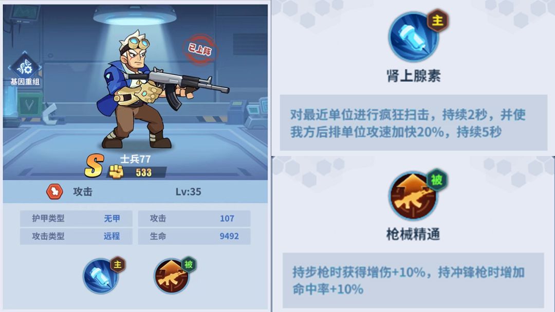 不仅如此,玩家在《疯狂恐龙》中还可以选择士兵77、雷瑟娜、泰格队长等不同的上阵人物,每个人物都有独特的主动技能和被动技能,在作战中可以进行使用。