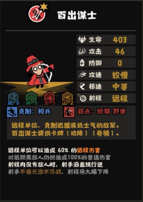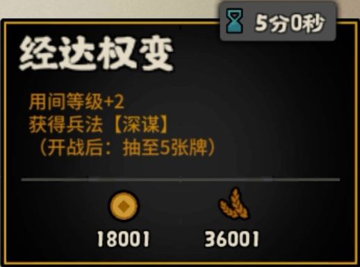 较为万金油的效果。开局两级的用间提升可以帮助你规避掉第一次累战的debuff,同时【深谋】让你开局更容易获得卡牌进行配合。