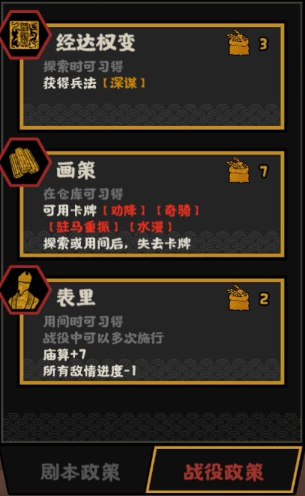而且如果真的遇上电脑用间等级超过3了,荀攸本身也能通过三政策循环来继续保持二政策的触发。