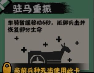 3.【驻马重振】:车骑暂缓移动6s,抵御兵击并恢复部分生命。