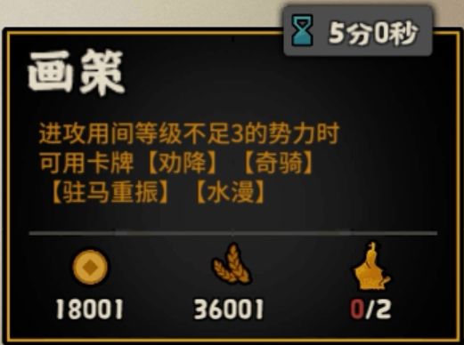 满足前置条件进攻用间等级不足3的势力后,可以获得四张卡牌。