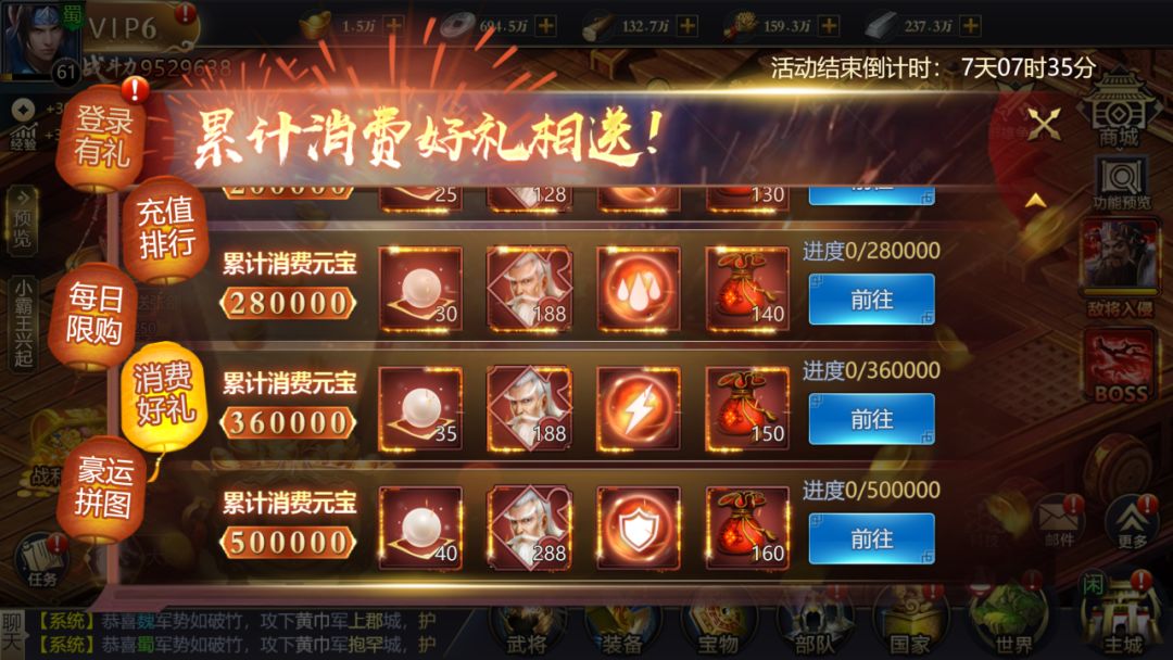 4. 消费好礼:消费元宝,宝珠、将魂、星纹、将星锦囊拿不停!