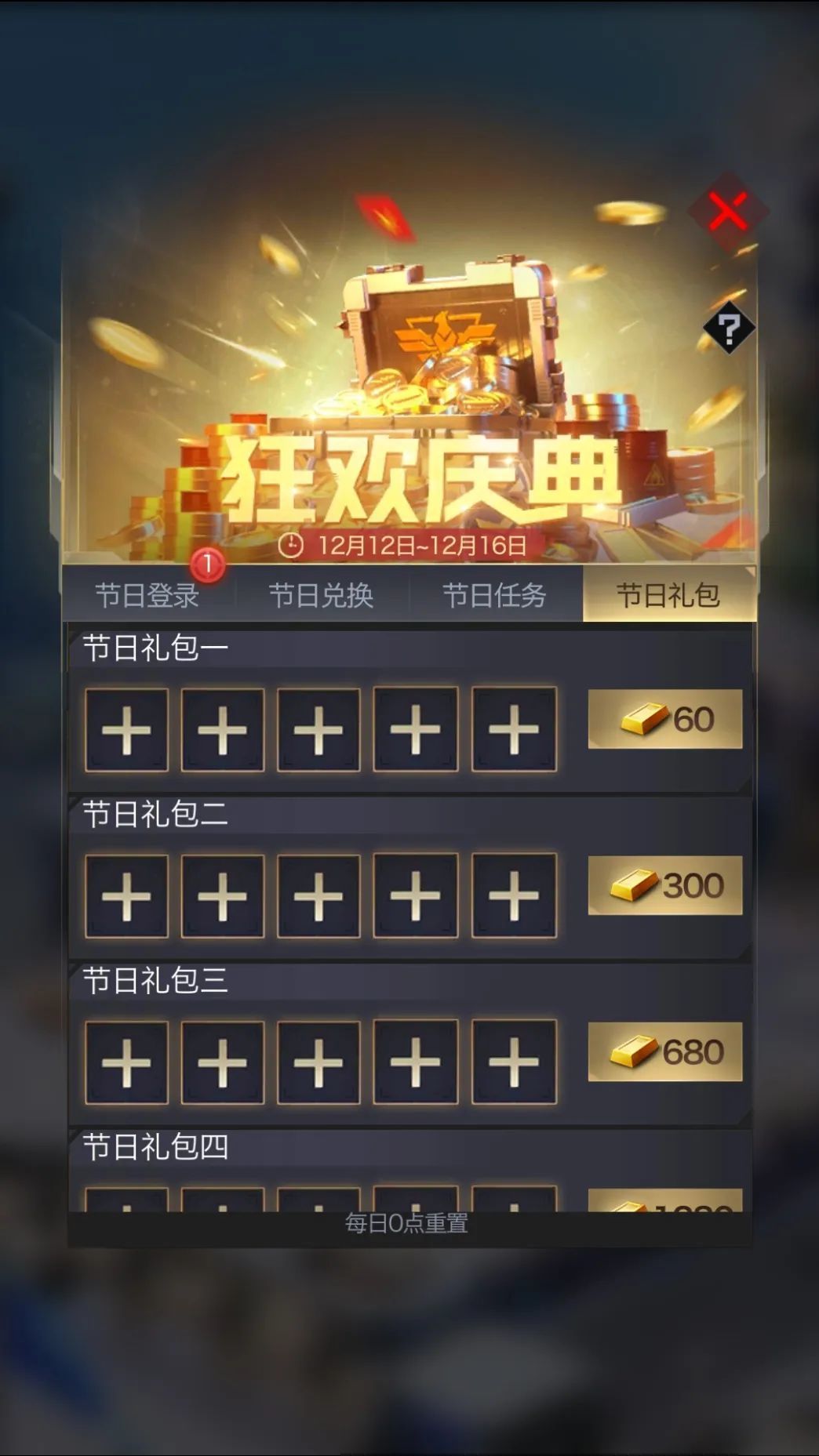 狂欢庆典活动感觉有一阵子没出了,节日庆典包含4组主题活动,分别为节日登录、节日兑换、节日任务和节日礼包,完成对应的主题活动即可获得超值道具。